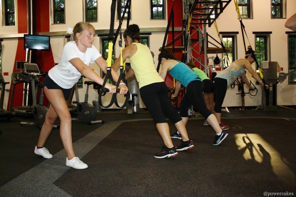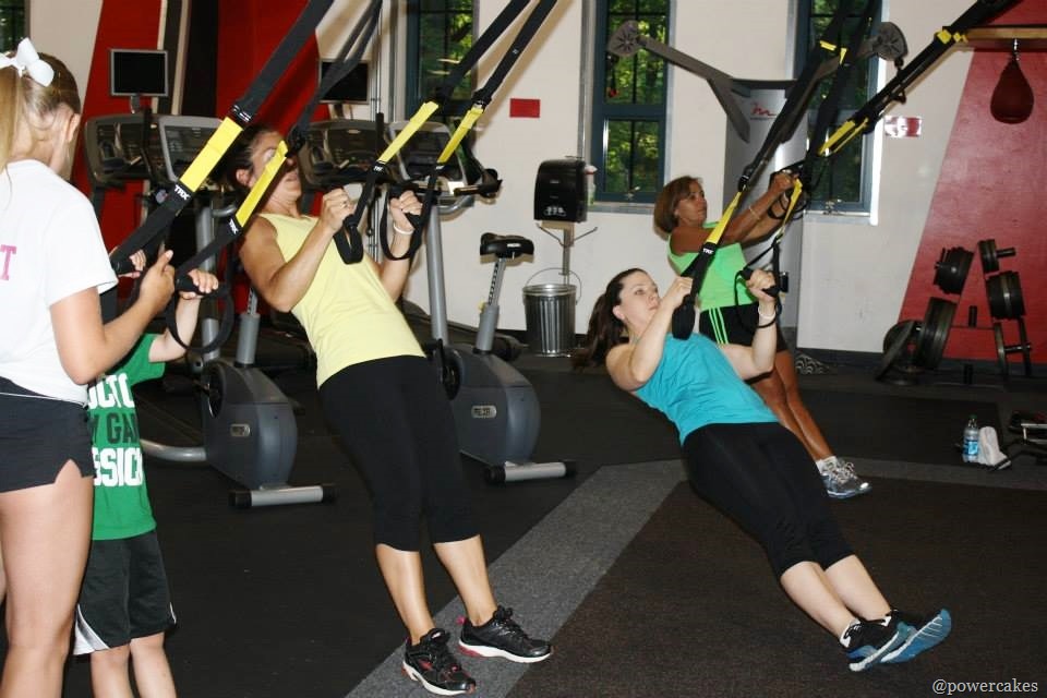 Mamacakes was in charge of the TRX portion of the bootcamp.