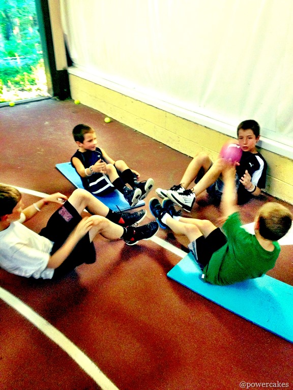 The boys worked together on some med ball throws.