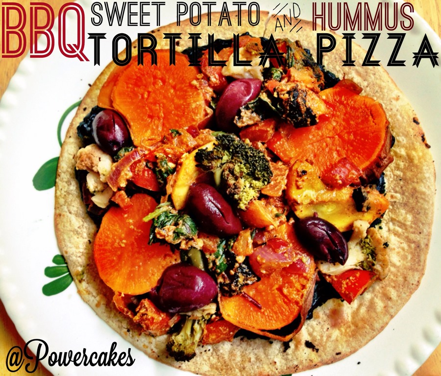BBQ Sweet Potato & Hummus Tortilla Pizza