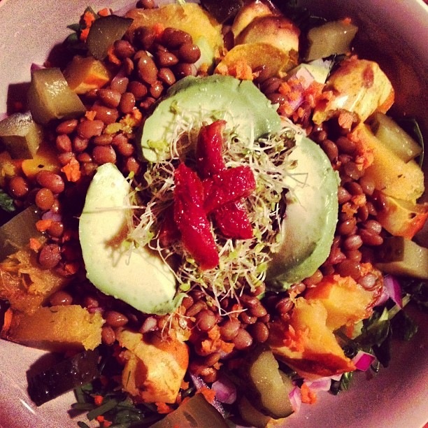 LENTIL, sprouts, avocado, & sundried tomatoes!