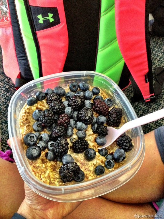 While waiting for the bus, I refueled with some overnight oats that I brought with me for a quick meal.