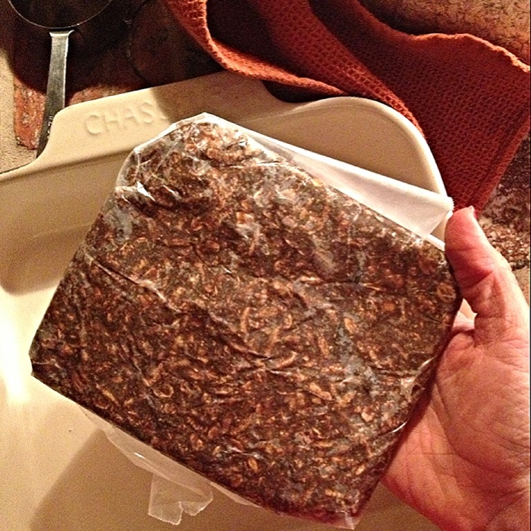 - Fold up your wax paper and mold the mix into one big square.