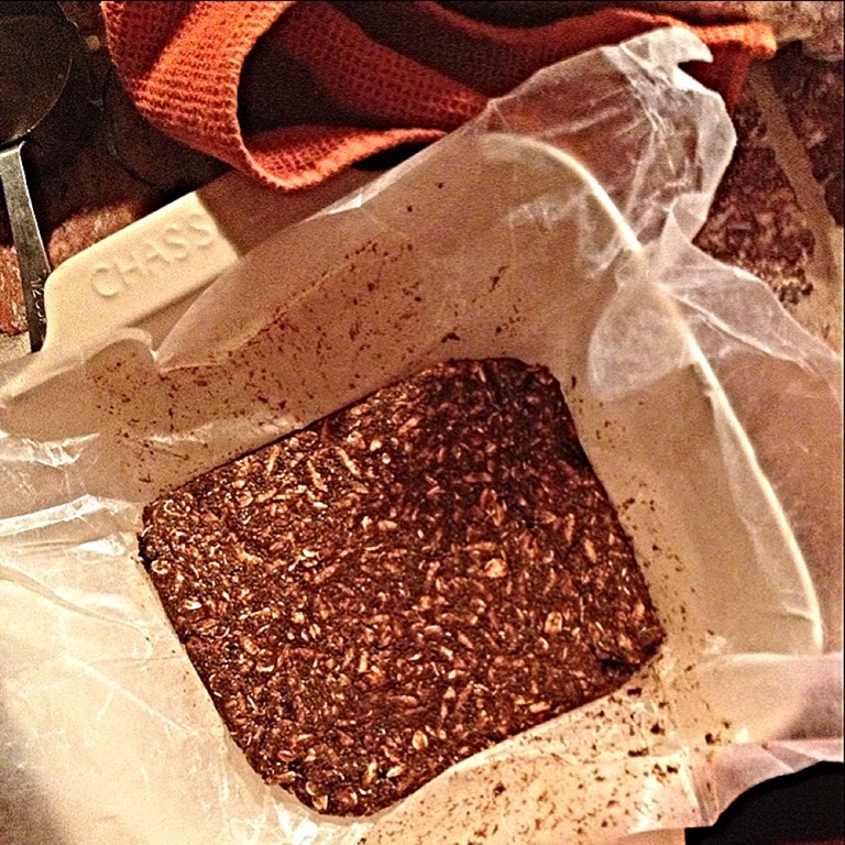 Pop into the freezer for about 1 hour until it hardens then take it out & cut into bars. Mine made 3 bars! Which made a perfect night snack (smothered in sunflower seed butter) or they could be saved (in the fridge) for the next day – if they make it that long
