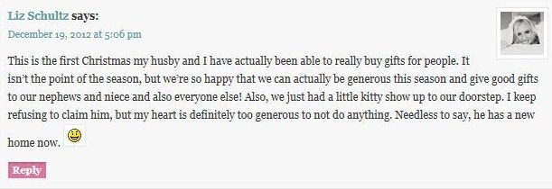 Liz, that is so sweet of you! Way to be generous with animals!