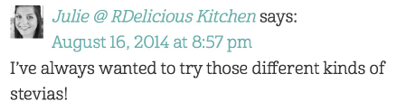 Before we get to today’s post, thank you everyone who entered the NOW Foods Giveaway! The lucky winner is, Julie @ RDelicious Kitchen! You’re going to love those stevias girl! Thank you to NOW foods!