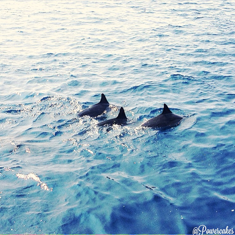 After an awesome few hours of snorkeling & hanging on the boat with the whole team, we started our sail back to the island….Only to be greeted by a huge “pod” of dolphins! I learned that dolphins travel in pods.