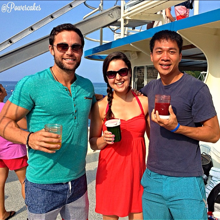 On the sail out to the bay, we all hung out at the front of the boat & got to sample some fresh raw juice! Pictured above is Drew & John from FitLife.TV – Drew is known for his Juicing Vegetables! I believe in my hand is something with kale, coconut water, & beets – whatever the combo, it was delish!