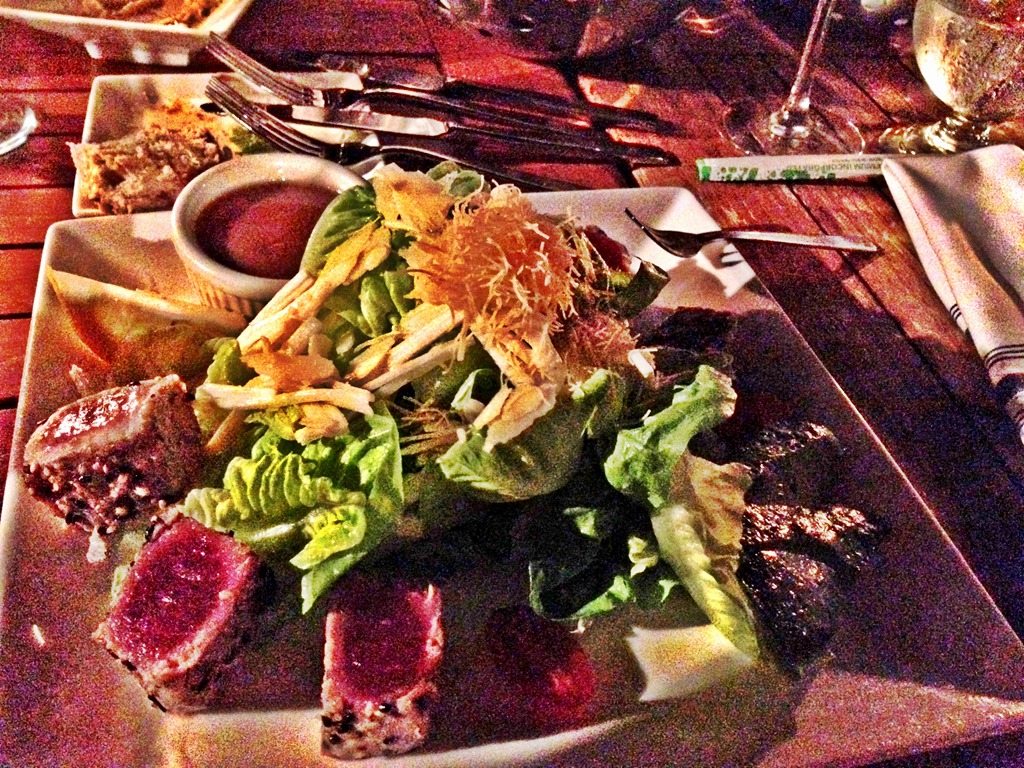 Our dinners came and they did not disappoint. I got a sesame seared ahi tuna salad with avocado & shaved parmesan. It was so amazing, guys.