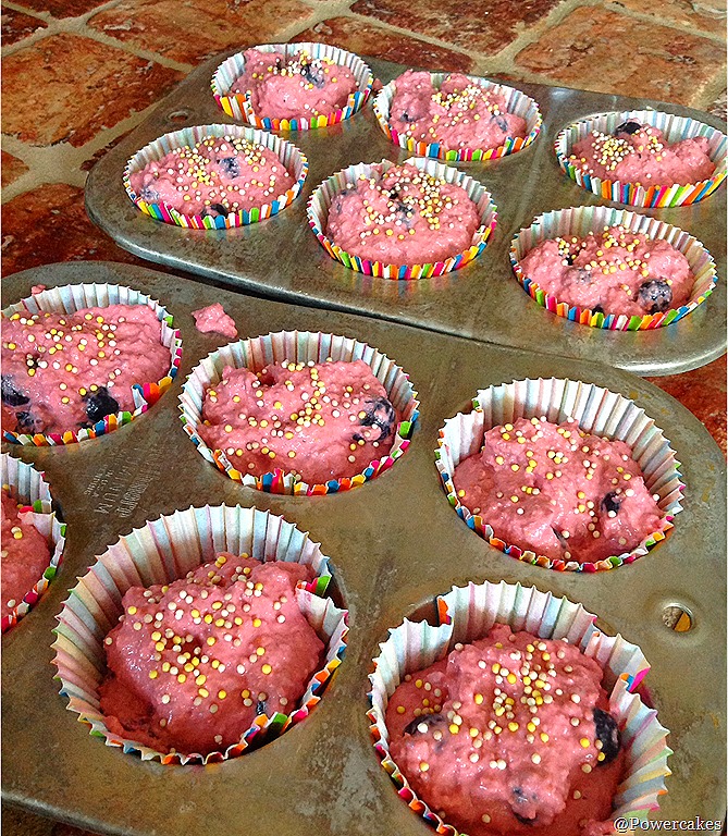 Batter into muffin tins with added sprinkles.