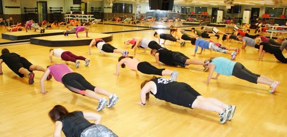 After the warm up we moved right into the stations for the night that consisted of Yoga, Spinning, Circuit Training, TRX, & Bootcamp. Everyone rotated between the stations in 15 minute intervals with their teams.