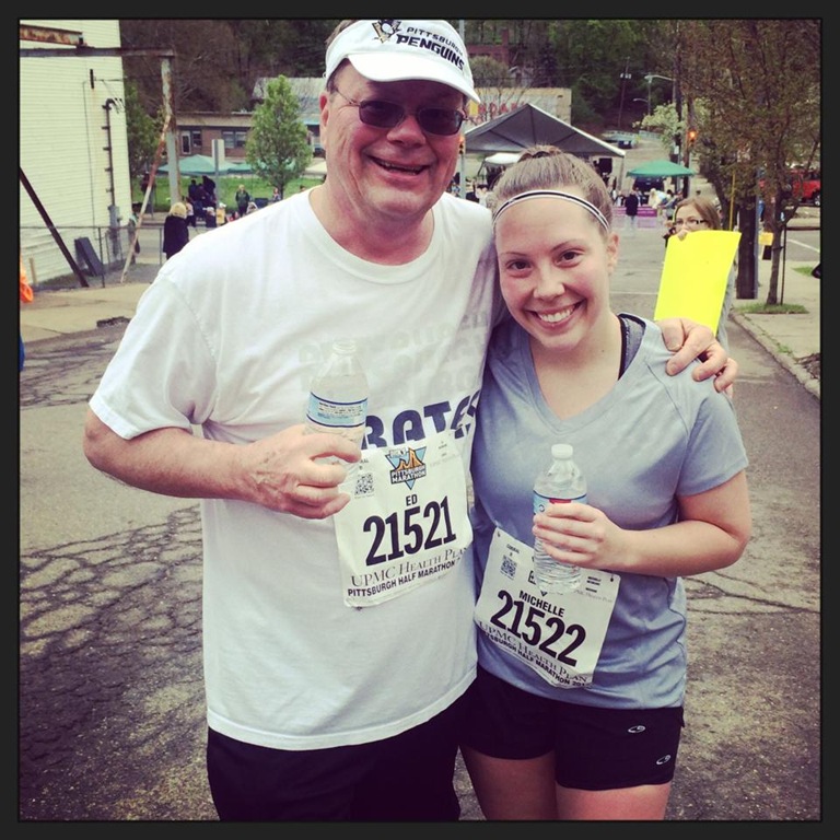 Pictured below is the adorable Michelle & her Dad during the Pittsburgh Half Marathon this year.