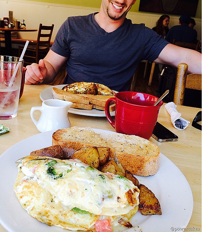 (the nickname I called Corey before we dated and I only met him once, I referred to him as “teeth boy”) and order a Claudia’s Special which is roasted veggies stuffed into an omelet and I added avocado. They have the BEST herb roasted “home fries” and thick cut multi-grain bread. #winning
