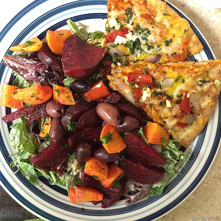 Greek Yogurt Dill & Feta dressing (my new favorite!), & Kashi pizza.