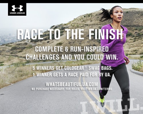 As well as the twitter chat, you can also complete the 6 racing-inspired challenges at WHATSBEAUTIFUL.UA.COM by the end of the month and 5 winners will be selected to receive a ColdGear® Racing Swag Bag. One lucky winner will also have her next race registration paid for by Under Armour®!