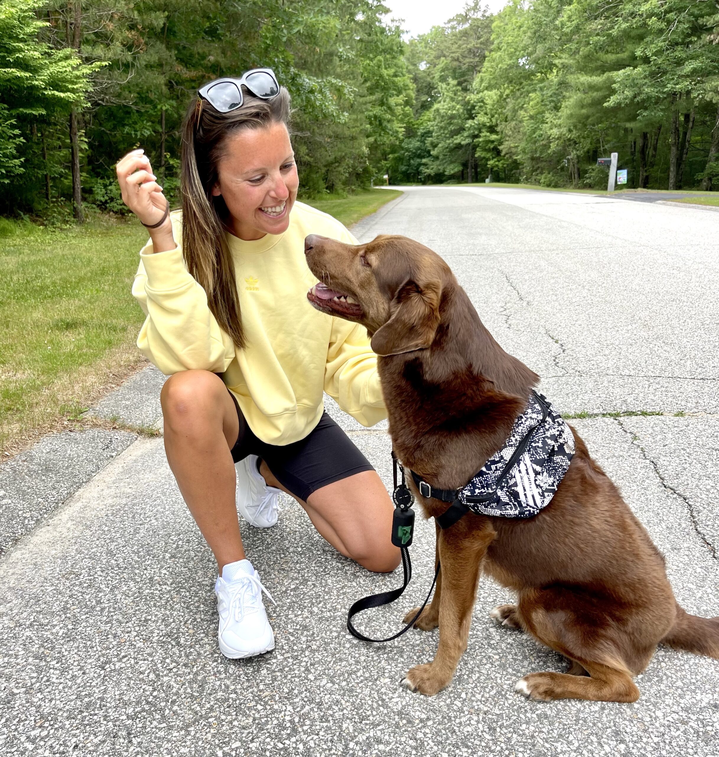 Pro tip: highly suggest putting a fanny pack waist bag ($28) on your dog to carry all the treats and poop bags, just saying.