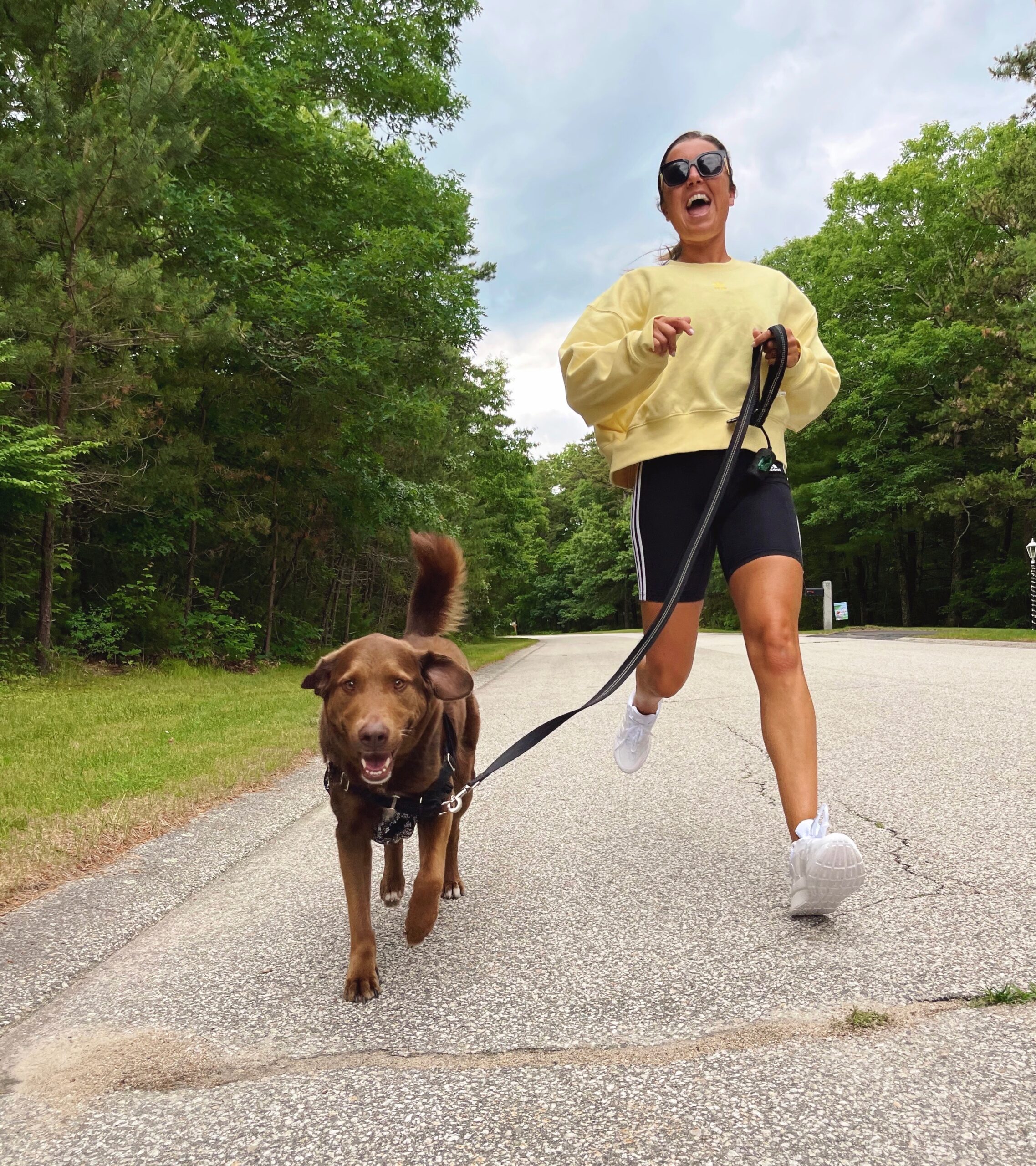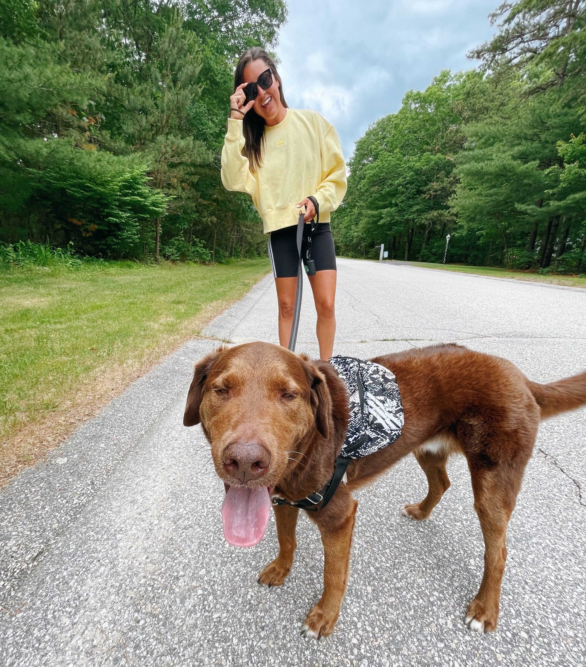 My literal go-to everyday look is leggings and a crewneck sweatshirt or biker shorts with a crewneck. I’m loving this yellow color (on sale for $28!!) paired with the 3 stripes bike shorts that are super high waisted and a longer length to pull it all together