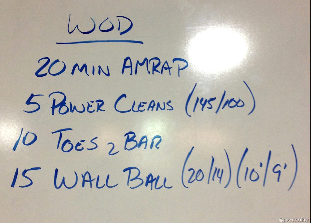This workout was no joke – I used a 75lb for the powercleans to work on form & it was still a tough one!