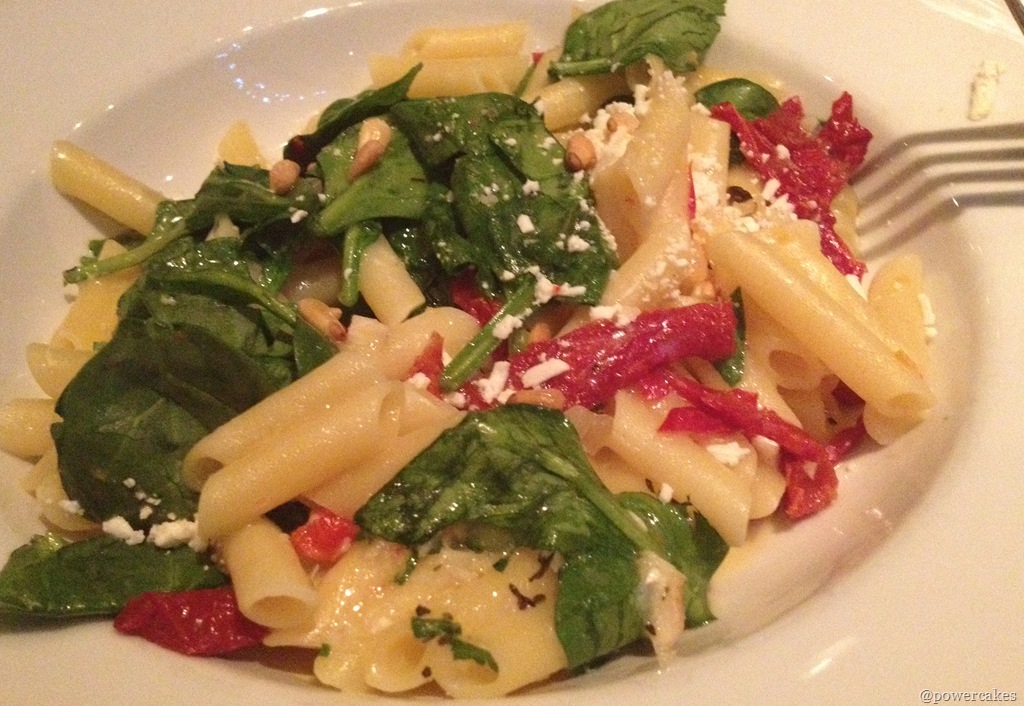 *I had some gluten free pasta with spinach, sundried tomatoes, pine nuts, feta, & shrimp!
