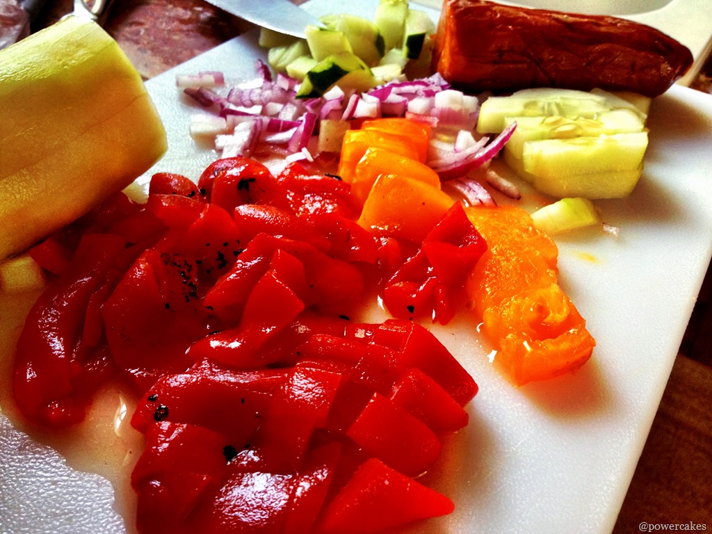 How most of my #POWERBOWLS start: lots of colors all chopped up!