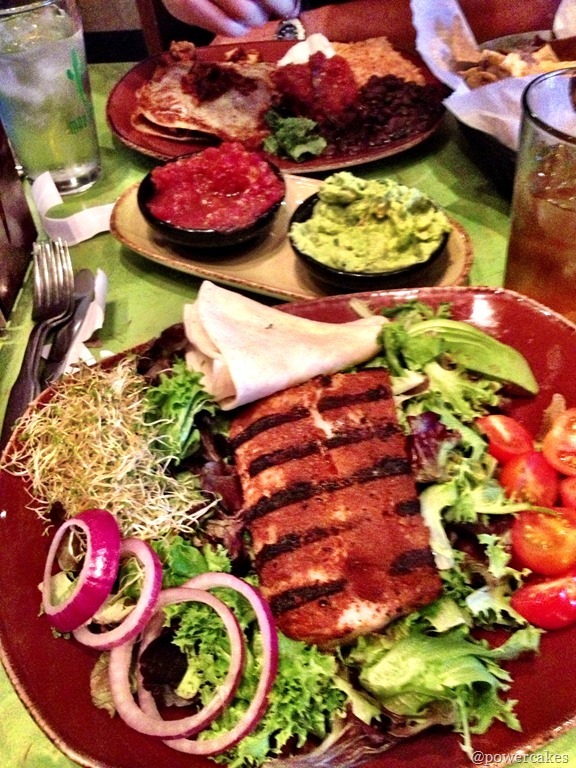 They have the best made to order guac at Mad Mex! I got a grilled mahi mahi salad with sprouts, black beans, avocado, salsa, & veggies then basically fought over the rest of the delicious guac with Corey. Love me some avocado! Corey got an enchilada that looked & was delish since I did snag a bite to taste Winking smile