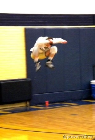 The video consisted of Corey wrestling, non-stop, for 40 minutes. Not only did he have to wrestle, but every few minutes a new fresh team member would step in to challenge Corey. Throughout this 40 minutes, he was pushed to the limits. Not only did he have to wrestle a rested teammate every few minutes, but he also would incorporate sprints throughout the workout & finished with pushing a plate across the floor, pull-ups til’ failure, push-ups til’ failure, & crunches til’ failure.