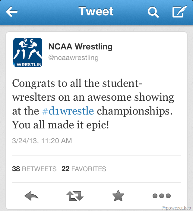 Another thing that moved me was the hash tag #SaveOlympicWrestling. Throughout the NCAA broadcast, there were constant commercials about how the Olympics is trying to cut wrestling, which would delete one of the oldest Olympic sports that premiered in the first modern Olympics in Athens in 1896. Here is a video I found that sums up what I saw this weekend…