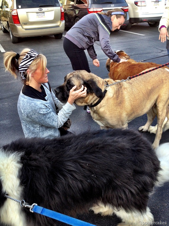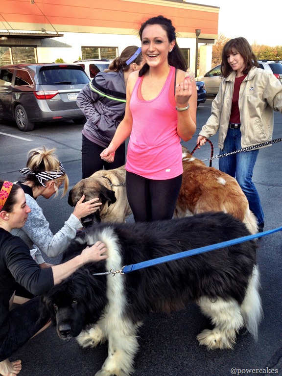 After an hour of power yoga, we were greeted by some of the dogs from the rescue. When they say Giant, they aren’t kidding. My friend Sarah got surrounded & I think the cookie in her hand had something to do with it.