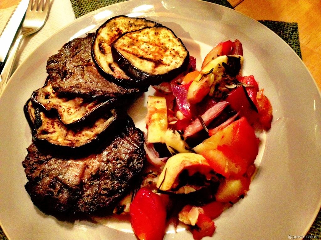 Papacakes made grilled pork tenderloin for the family with some grilled eggplant & portabella mushrooms. We also roasted up some yummy rosemary veggies! A mix of red onion, yellow squash, zucchini, potatoes, & beets with coconut oil, rosemary, salt & pepper to taste. I also had some lentils that were un-pictured!